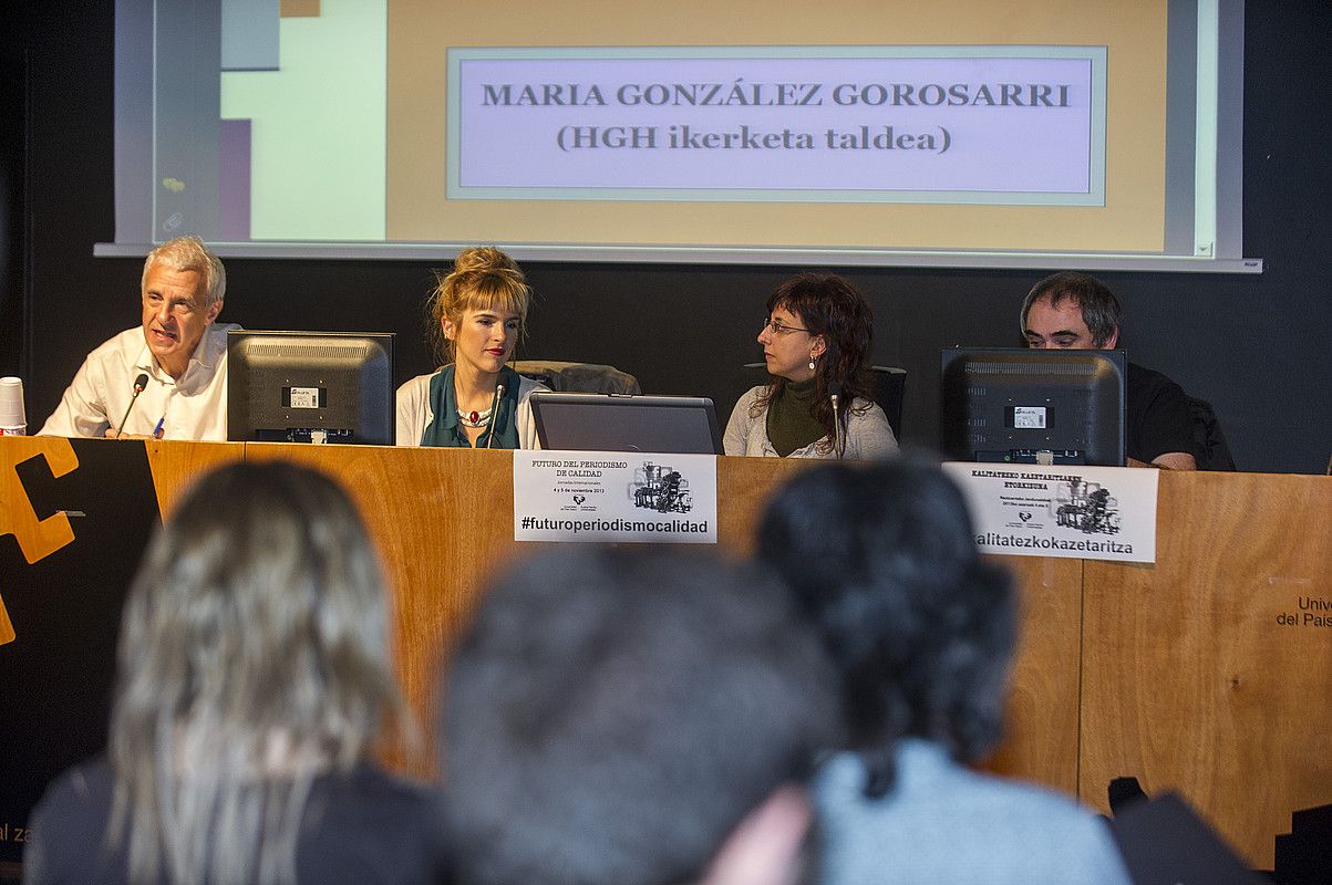 Hizkuntza gutxituetan lan egiten duten hainbat profesionalek euren egoeraren berri eman zuten, atzo, kalitatezko kazetaritzari buruzko jardunaldietan. Egoera zaila dela onartu arren, itxaropenerako tarterik bada.