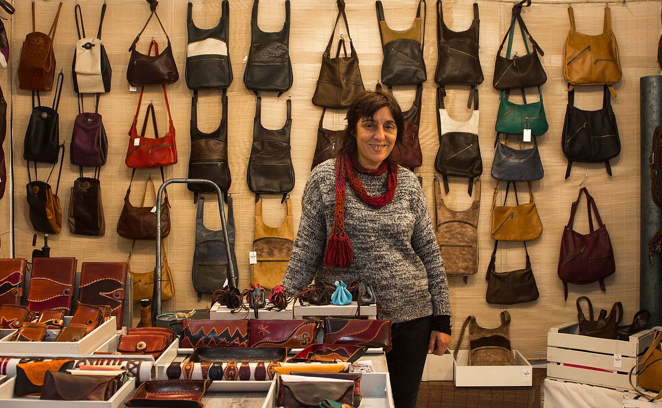 Tailerrean egindako lana jendaurrean erakutsi eta saltzeko aukera izaten dira artisautza azokak eskulangileentzat. Aukera hori baliatzen ari da egunotan Marta Txibite larrugina, Donostian.