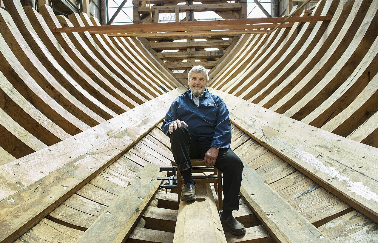 «Baleontziaren kopia ikusi duenean emozioz bete da, eta ezin zuen hitzik egin», esan zuen atzo Jon Maia Albaolak, Itsas Kultur Erakundeko komunikazio arduradunak. Robert Grenier (Trois-Rivieres, Quebec, 1938) itsaspeko arkeologoaz ari zen Maia. 1978. urtean, San Juan galeoiaren aztarnak topatu zituen Grenierrek Red Bayko ur hotzetan, Kanadan. Ontzia egiteko lanak ikustera eta hitzaldiak ematera etorri da Euskal Herrira.