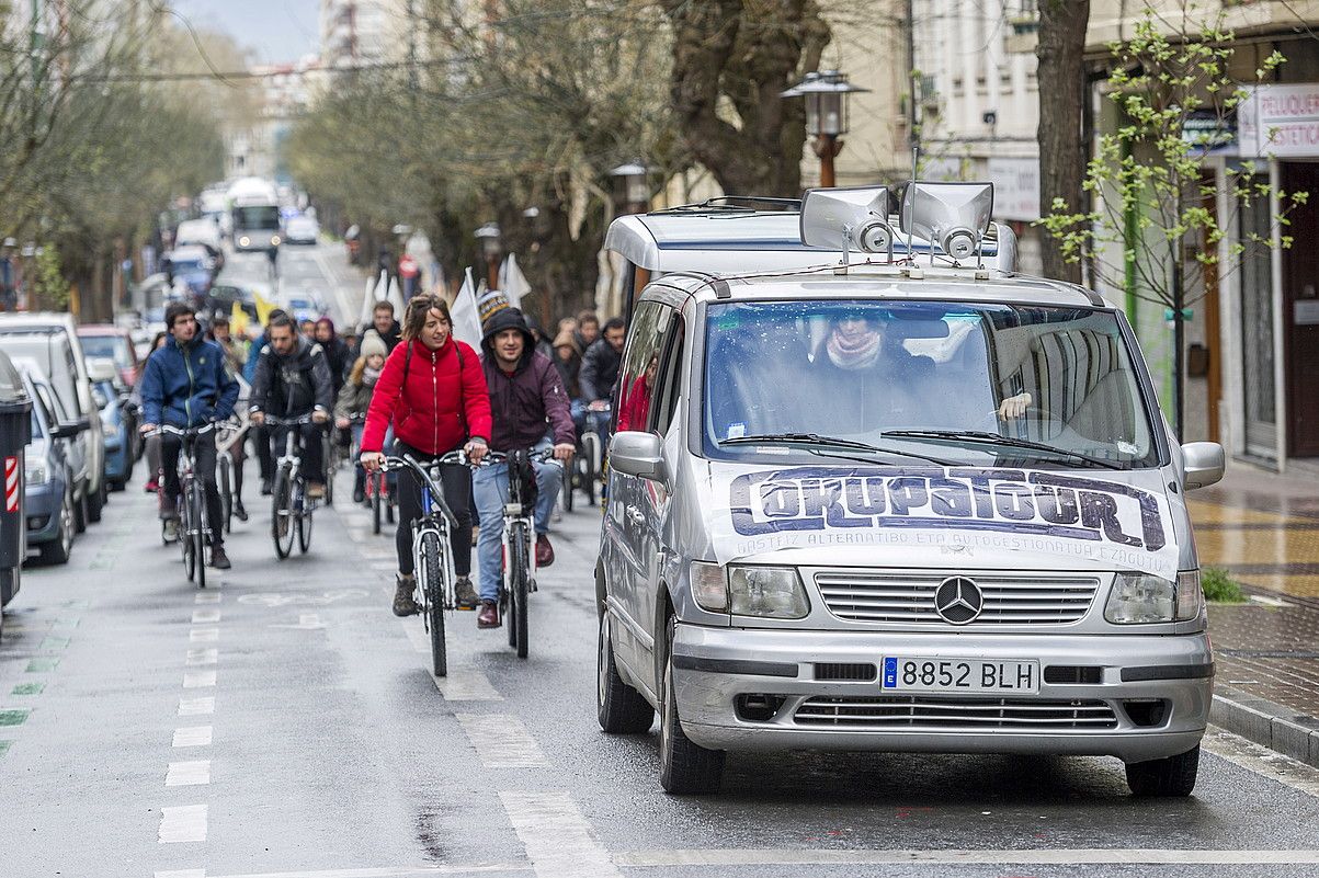 Goizeko hamaikak dira Gasteizko Andre Maria Zuriaren plazan. Ohiko larunbat goiza dirudi, bisitarien profila eta helburuagatik ez balitz. Ez dute argazki kamerarik eskuan, ez eta maparik ere; areago, asko eta asko bizikletarekin hurbildu dira: ezohiko bisitariak dira. Azalpenak eman ditu Xuban Nafarratek: «Hau ez da tour turistiko tipiko bat izango. Saiatuko gara historia beste ikuspuntu batetik kontatzen; historia soziala kontatuko dugu, batez ere, ahaztuen historia, beheko perspektiba batetik azalduko dugu nola aldatu den Gasteiz azkeneko 100 urteetan. Kanpoko auzoak, langileen auzoak, nola aberastu duten gaur egungo hiri izaera kontatuko dugu». Ehun lagun baino gehiago elkartu dira bisita egiteko asmotan, gazte eta ez horren gazte direnak tartean. Abiatzear da ezohiko bisita turistikoa.