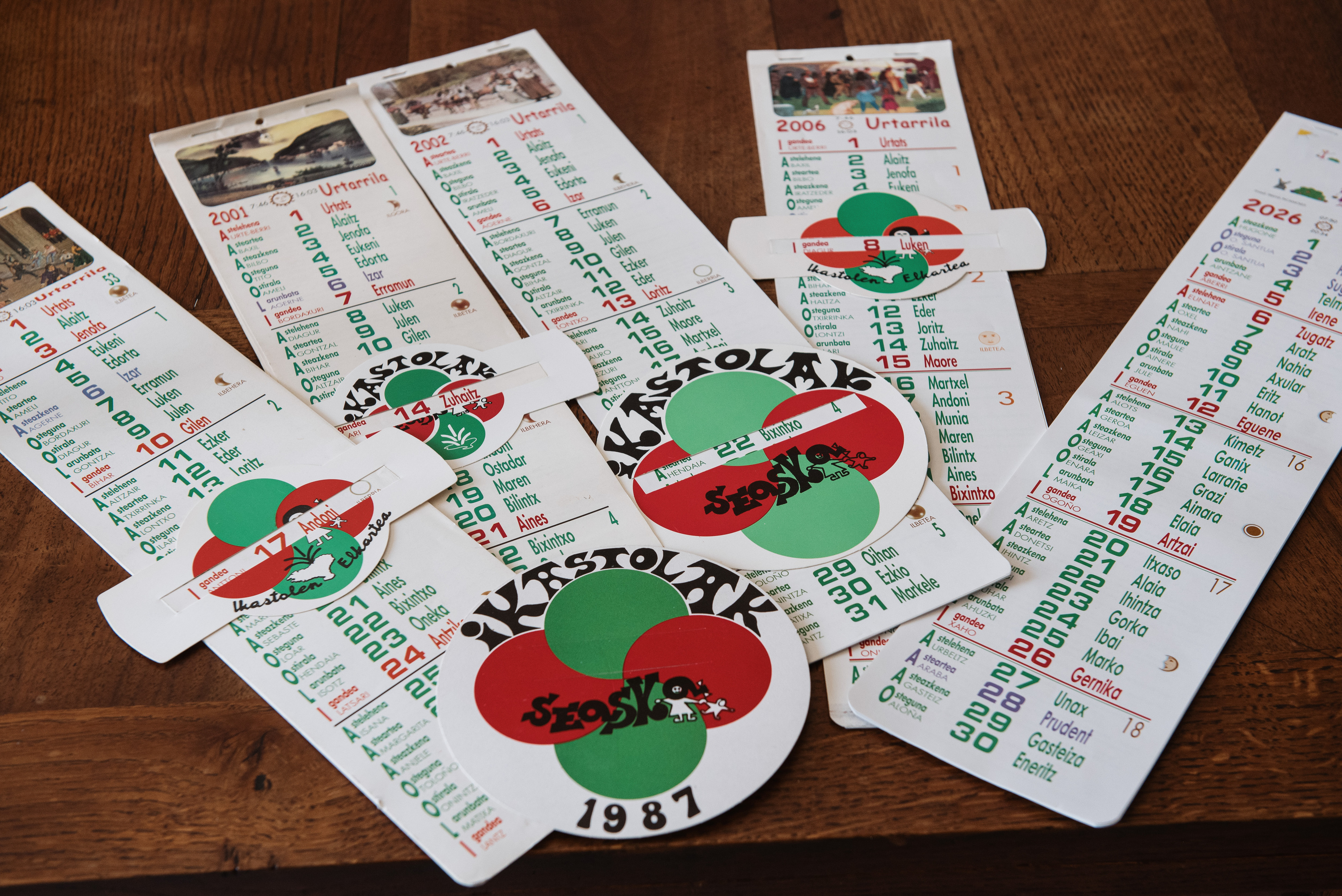 1982an atera zuten Seaskako lehen egutegia. Jose Muruaga da haren sortzailea. Bertzeak bertze, euskal mitologiatik eta toponimiatik hartu izenak txertatzen ditu egutegian. Haien erabilera ere aztertzen du, izenak «modaren» arabera jartzen baitira.