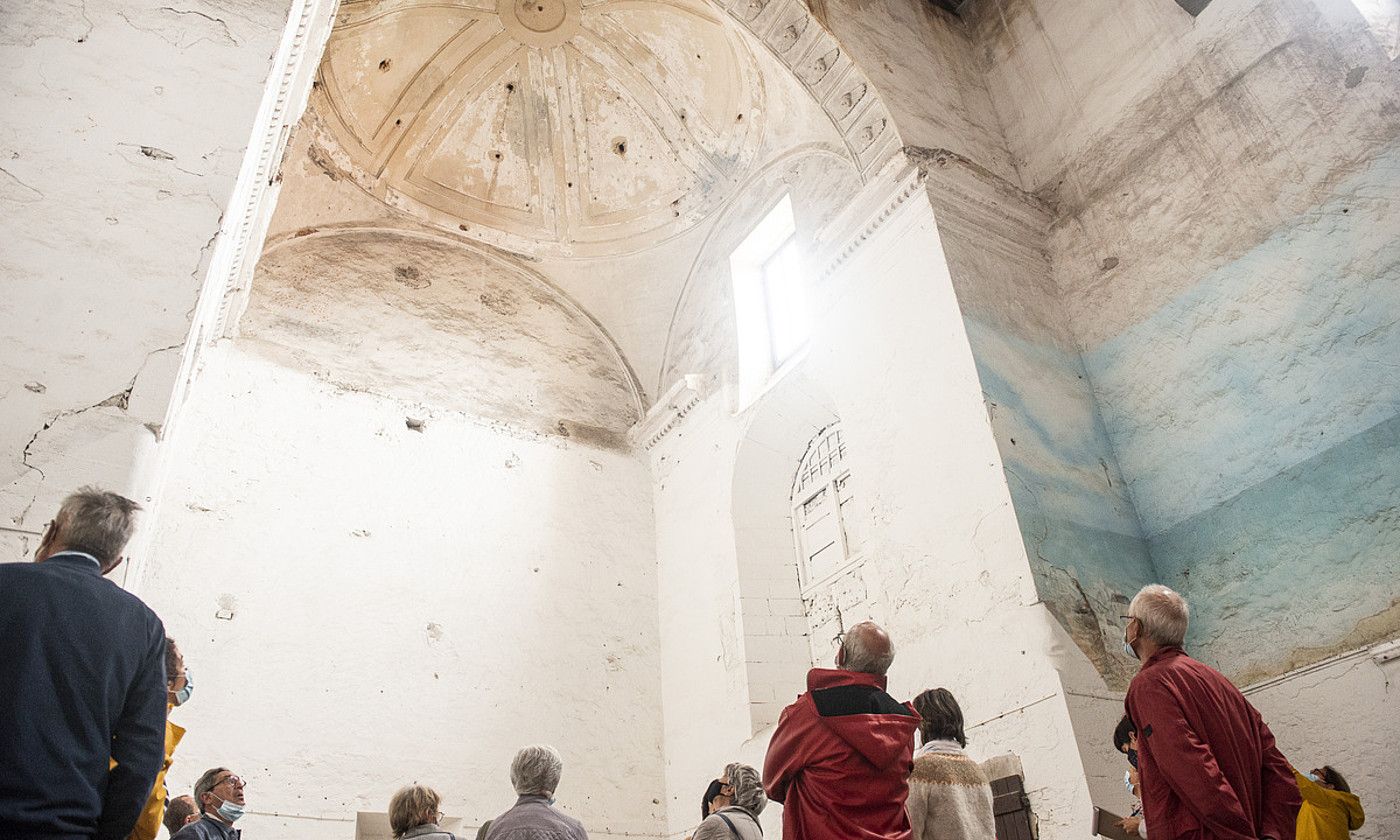 Ziburuko errekoletoen komentuko kaperan, bisitariak goratasunari begira. GUILLAUME FAUVEAU.