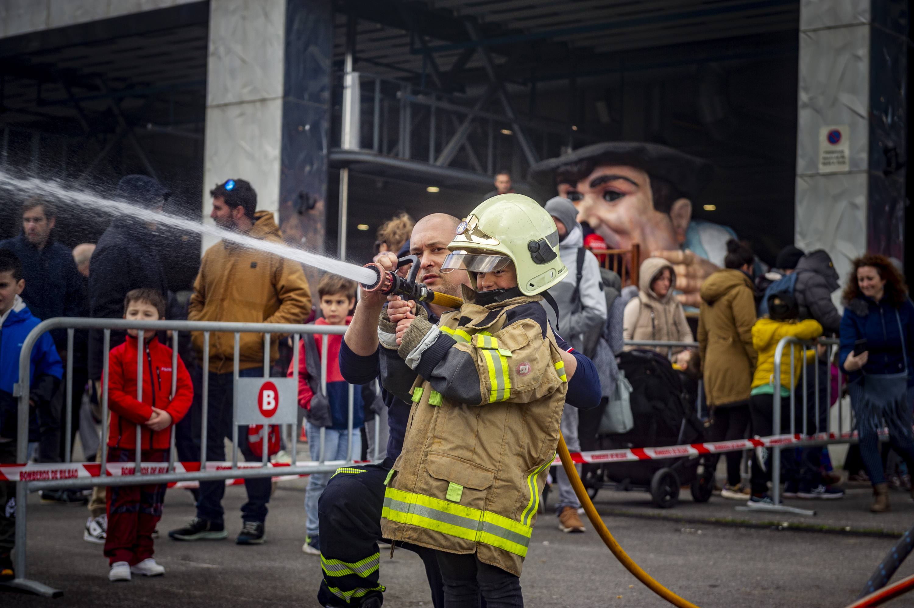 Bost urte baino ez ditu Jonek, baina jadanik argi du suhiltzailea izan nahi duela. Bera da suhiltzaile artera suhiltzailez jantzita etorri diren umeetako bat, eta baita kamioira igo diren lehenetariko bat ere. Ana Hervas deitzen da haren ama, eta, bien bitartean, hark gorde dizkio motxila eta jostailuzko su itzalgailua. «Izugarri gustatzen zaizkio suhiltzaileak!», onartu du. «Youtuben beti aritzen da Bilboko suhiltzaileen bideoak ikusten». Eta bertatik bertara ikusi ahal izan ditu oraingoan.