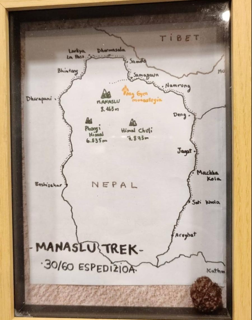 Mapa bat, nik eskuz egindako trekkingaren mapa jaso du aitak opari bere urtebetetze egunean. Begiak dir-dir jarri zaizkio, harridura eta ilusioaren aurpegia du 60 urteko kirolari aseezinak, haur batek Olentzeroren gutunean eskatutako bizikleta jasotzen duenekoa bezalakoxea. Aita-alabek mendizaleon meka den Himalaiara joateko ametsa dugu parez pare; hamar egun eta 177 kilometroko abentura, Manaslu zortzimilakoa zaindari.