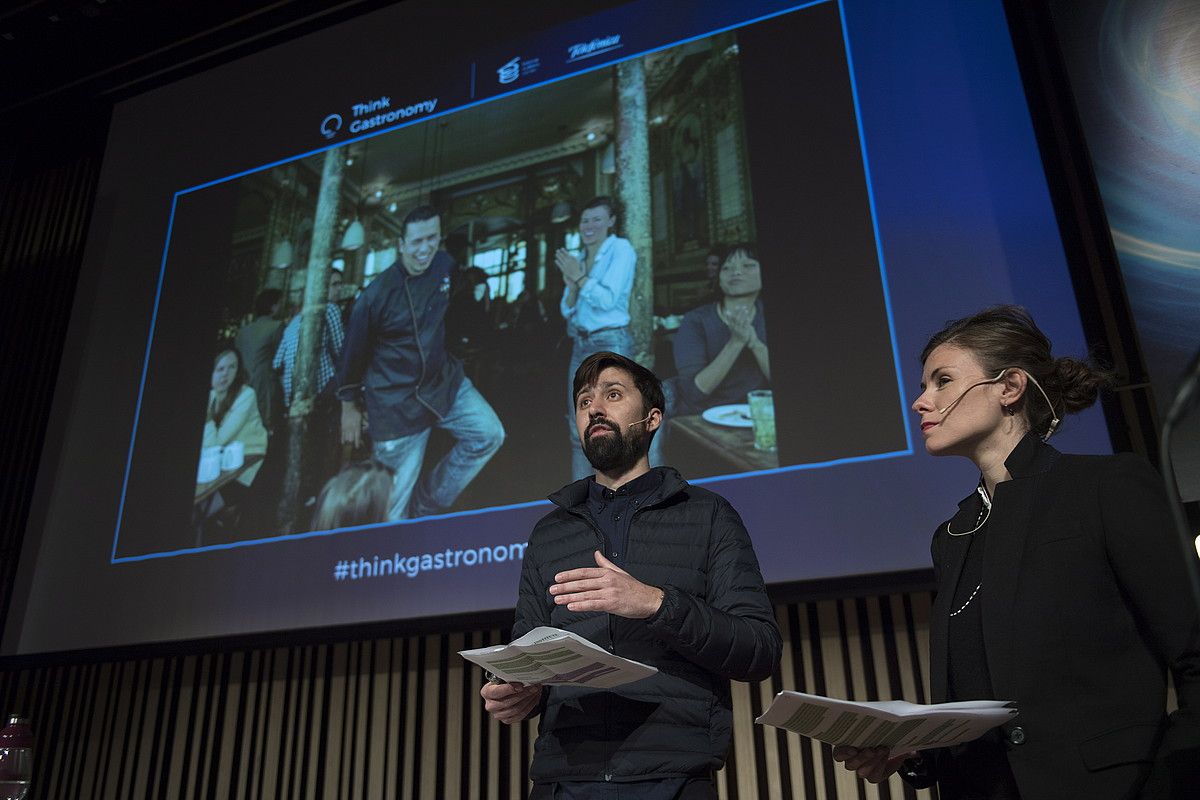 Louis Martin eta Marine Mandrile Refugee Food Festival jaialdia aurkezten, atzo, Donostian. JUAN CARLOS RUIZ / FOKU.