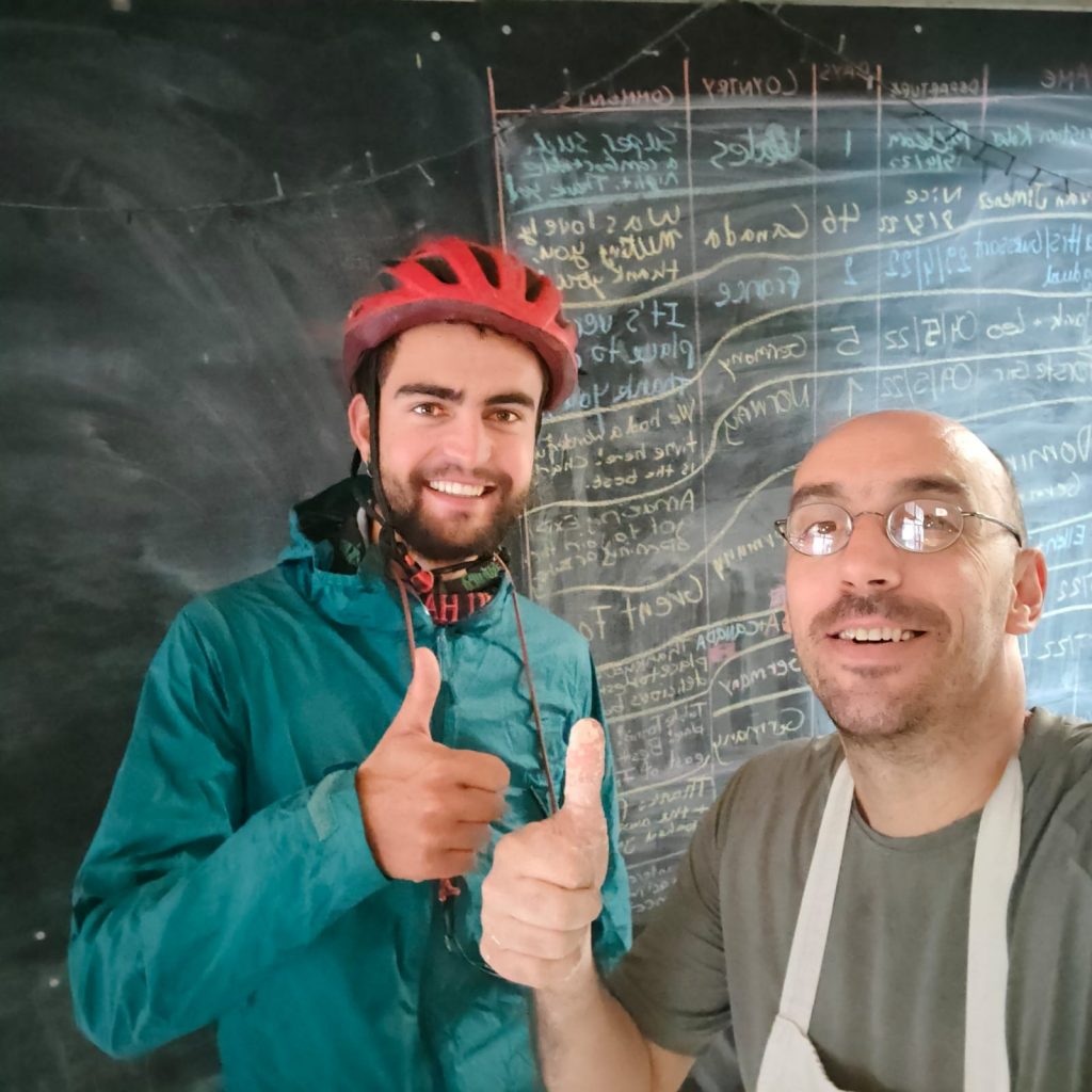 - Hainbeste bidaiariren artean bazen frantziar bat benetan historia harrigarriarekin. Egun berean lana galdu eta neska-lagunak berarekin utzi zuen, hondoa joz. Ohiko bizimoduak eragin zion mina ahaztu nahian, bizikleta zakutoz hornitu eta tximino baten konpainiarekin (ez dakit nondik aterako zuen tximinoa) pedalei eragiteari ekin zion, norabiderik gabe. Urteak igaro dira eta ez omen da etxeratu oraindik. Hamaika entzuteko jaioak gara!