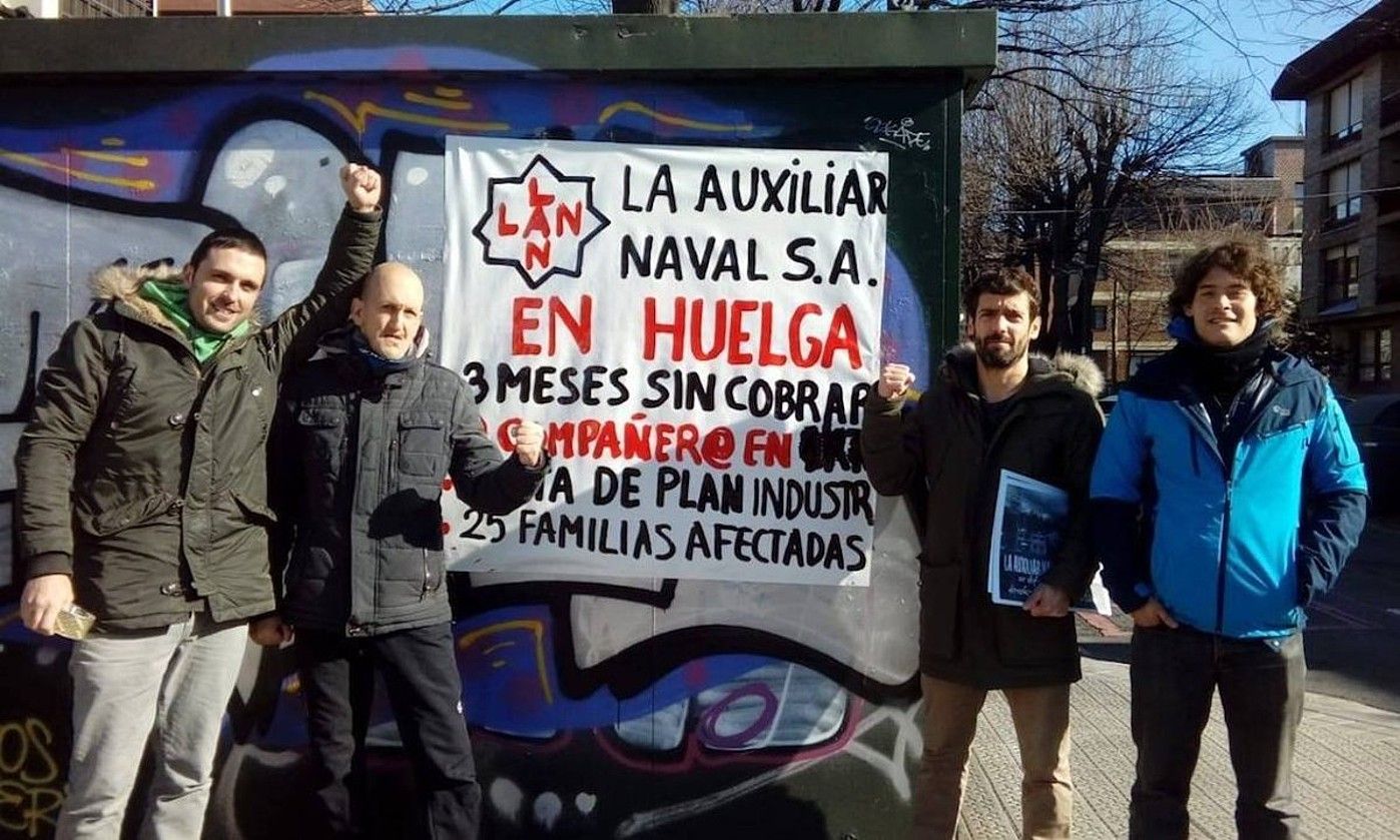 ERANDIO. Erandioko Lutxana auzoan (Bizkaia) dagoen La Auxial Naval enpresako 25 langileek greba mugagabea hasi dute. LABek agiri baten bidez jakinarazi duenez, kinka larrian dago enpresa: azken bi urteotan hornitzaileei ordaintzeari utzi dio, Gizarte Segurantzari ez dio behar bezala pagatu, eta hainbat soldata zor dizkie bere 25 langileei. Enpresak itsasontzietarako leihoak egiten ditu, eta arlo horretan aritzen den Euskal Herriko enpresa bakarra da.