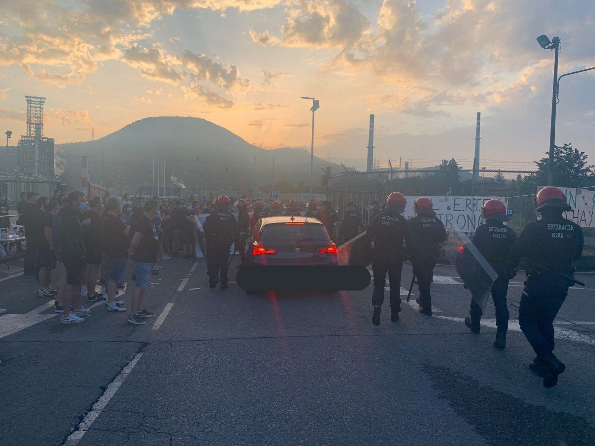 «Pikete lasaia egiten ari ginen, grebaren lehen hiru egunetan egin dugun bezala, baina Ertzaintza gaur beste jarrera batekin etorri da», azaldu dio BERRIAri Iker Gonzalo CCOO sindikatuko delegatuak. Enpresak aldi baterako espedientea jarri du indarrean, langile batzordearekin adostu gabe, eta, hura salatzeko, bederatzi eguneko grebara deitu dute. Aurreko egunetan bezala, ate bakarrean egin dute protestaldia, beste bi sarrerak libre utziz, eta gutxieneko zerbitzuen ziurtagiria zuten langileei sartzen utzi diete.