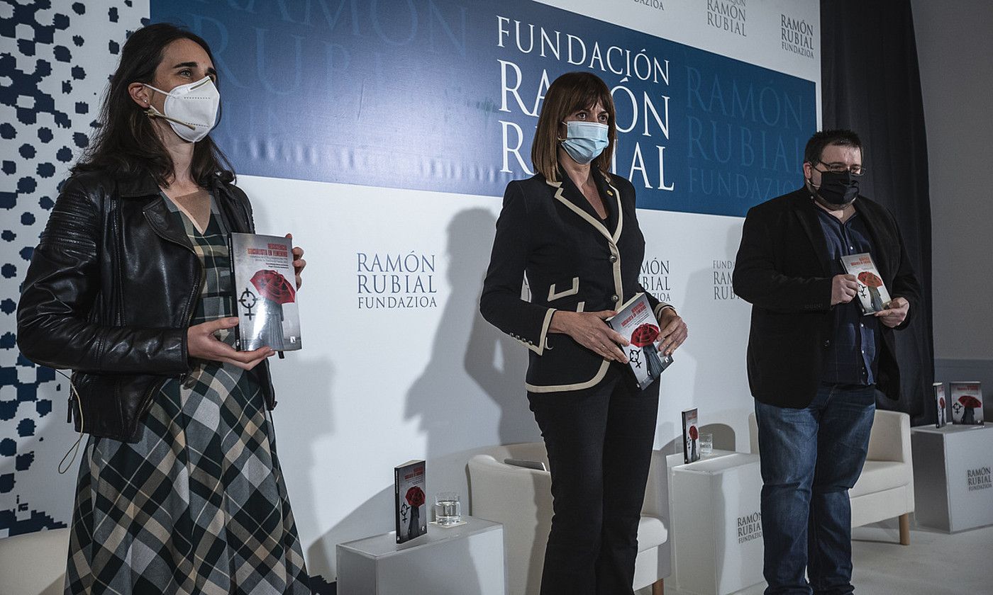 Ezkerretik, Sara Hidalgo, Idoia Mendia eta Angel Comonte, atzo, Bilbon. ARITZ LOIOLA / FOKU.