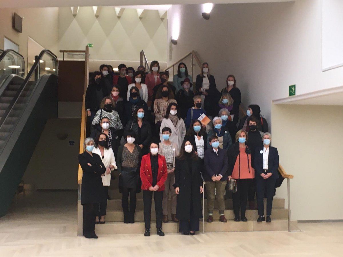 Atzo irakurritako adierazpenaren sustatzaileen artean dago Aznarez; eta, harekin batera, Gemma Zabaleta, Jone Goirizelaia, Eisabette Piñol, Kontxi Bilbao, Esther Larrañaga, Onintza Lasa eta Nekane Altzelai. Gibelean, izenpetzaile zerrenda luzea, alderdi, erakunde eta arlo anitzetakoak: batzuk aipatzearren, Sylvaine Alaux, Itxaso Atutxa, Maddalen Iriarte, Rafaela Romero, Garbiñe Biurrun, Patrizia Velez, Anaiz Funosas, Garbiñe Aranburu, Izaskun Landaida, Aitzpea Leizaola, Anita Lopepe, Bakartxo Tejeria, Bel Pozueta eta Nagore Iturrioz, bertzeak bertze.
