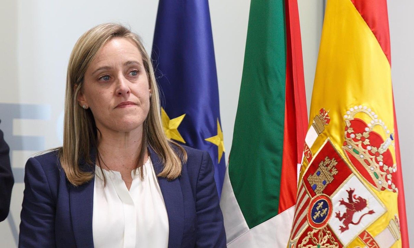 Amaia Fernandez, Alonsok dimisioaren berri emateko agerraldian. D, AGUILAR / EFE.