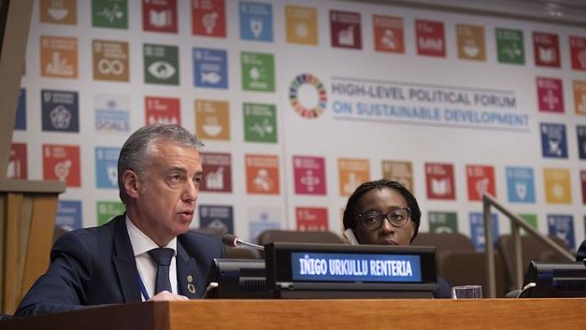 "Euskadi balioetan oinarritutako herria da", erantsi du, eta nabarmendu du balio horiek bat datozela Garapen Jasangarrirako Helburuek ezarritakoekin. "Erakutsi dugu autogobernua ongizatearen sinonimo dela; jarraituko dugu mundu berdinzaleagoa, jasangarriagoa, solidarioagoa eta bidezkoagoa erakitzeko konpromisoari lotuta".
