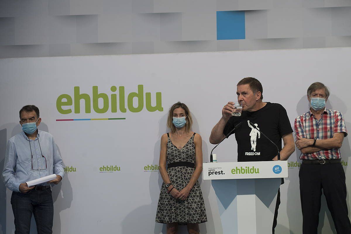 Iñigo Iruin, Miren Zabaleta, Arnaldo Otegi eta Rafa Diez, joan den abuztuaren 1ean. JUAN CARLOS RUIZ / FOKU