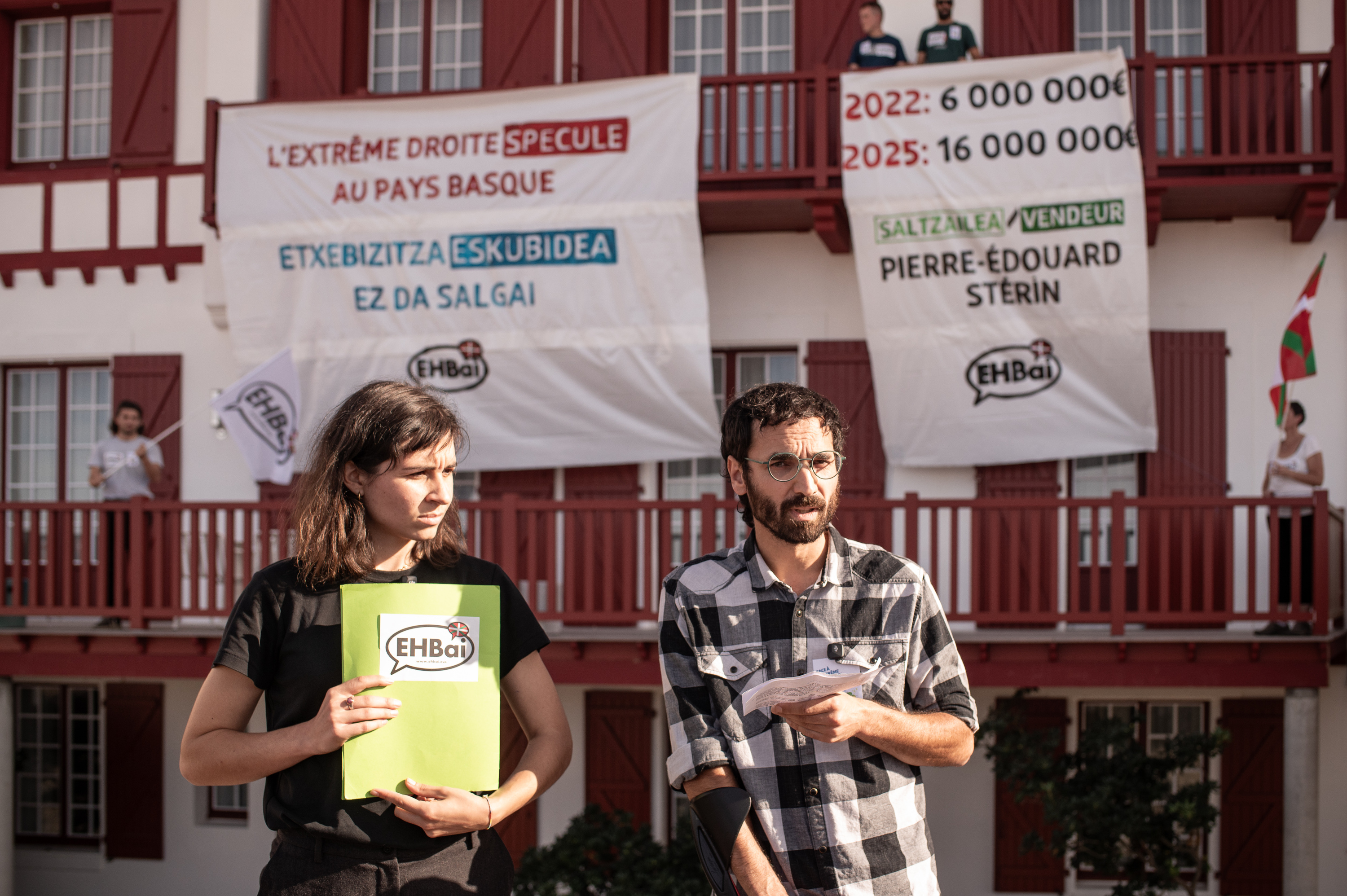 EH Baik jakinarazi duenez, militante bat Baionako komisariara deitu zuten atzo, Pierre Edouard Sterinen bigarren etxebizitzaren salmenta espekulatiboaren salatzeko egindako ekintzagatik. Izan ere, iazko urrian joan ziren EH Baikoak Donibane Lohizunera (Lapurdi), eskuin muturreko dirudun horren bigarren etxebizitzara: «Eskuin muturrak Ipar Euskal Herrian espekulatzen du», zioen balkoi gainean ezarri zuten banderolak. Handik guttira, Sterinek salaketa jarri zuen, eta horren harira deitu zuten deklaratzera atzo Gabi Arestegi EH Baiko kidea.