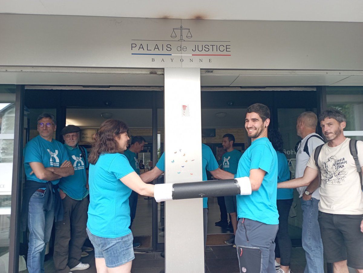 Desobedientzia ekintza egin dute Bakegileek ostiral arratsaldean Baionako auzitegian. Sartzea oztopatu dute 25 ekintzailek, bata besteari hodi batzuen bidez lotuz. Frantziako Polizia bertaratu da; auzitegiaren barrenean zein kanpoaldean izan dira poliziak zenbait orduz, eta, azkenean, banan-banan aritu dira protestan zirenei tiraka, ateratzeko. Zerra elektrikoa baliatuta, ekintzaileek erabili dituzten hodiak moztu dituzte. Bortizki jardun dute, baina ez dute inor zauritu. Kanporatze operazioa bukatuta, ekainaren 11ko manifestazioan parte hartzera deitu dute.