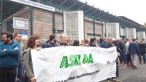 "Frantziako eta Espainiako estatuek atxiloketa honekin erakusten digute bake prozesua saboteatu nahi dutela". Anita Lopepe EH Bairen bozeramaileak "fermuki salatu" du Josu Urrutikoetxearen atxiloketa, Baionan egindako elkarretaratzean. "ETAren disoluzioaren urtemugaren biharamunean honelako gertakari bat ulergaitza zaigu. Urrutikoetxea eta beste bi lagunak berehala aska ditzaten exijitzen dugu". Baionan ez ezik, Donibane Garazin eta Maulen ere egin dituzte bilkurak.