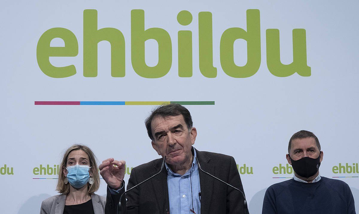 EH Bilduko kide ugari bildu ziren Bilbokoan. Unai Urruzuno legebiltzarkideak esan zuen Espainian «inboluzio» baten bila dabiltzan sektore boteretsuak daudela Auzitegi Gorenak harturiko erabakiak «sustatzen».