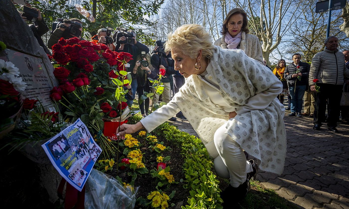 Isilik egin dute lore eskaintza.Buesaren alargun Natividad Rodriguez eta Diezen ama Begoña Elorza lehenengoak izan dira arrosa gorriak paratzen oroitarrian, Imanol abeslariaren Ausencia kanta entzuten zen bitartean. Alderdi politikoetako eta erakundeetako ordezkariek ere banan-banan utzi dituzte loreak monolitoan. Ekitaldi xumea izan da, eta ez da adierazpenik egin.