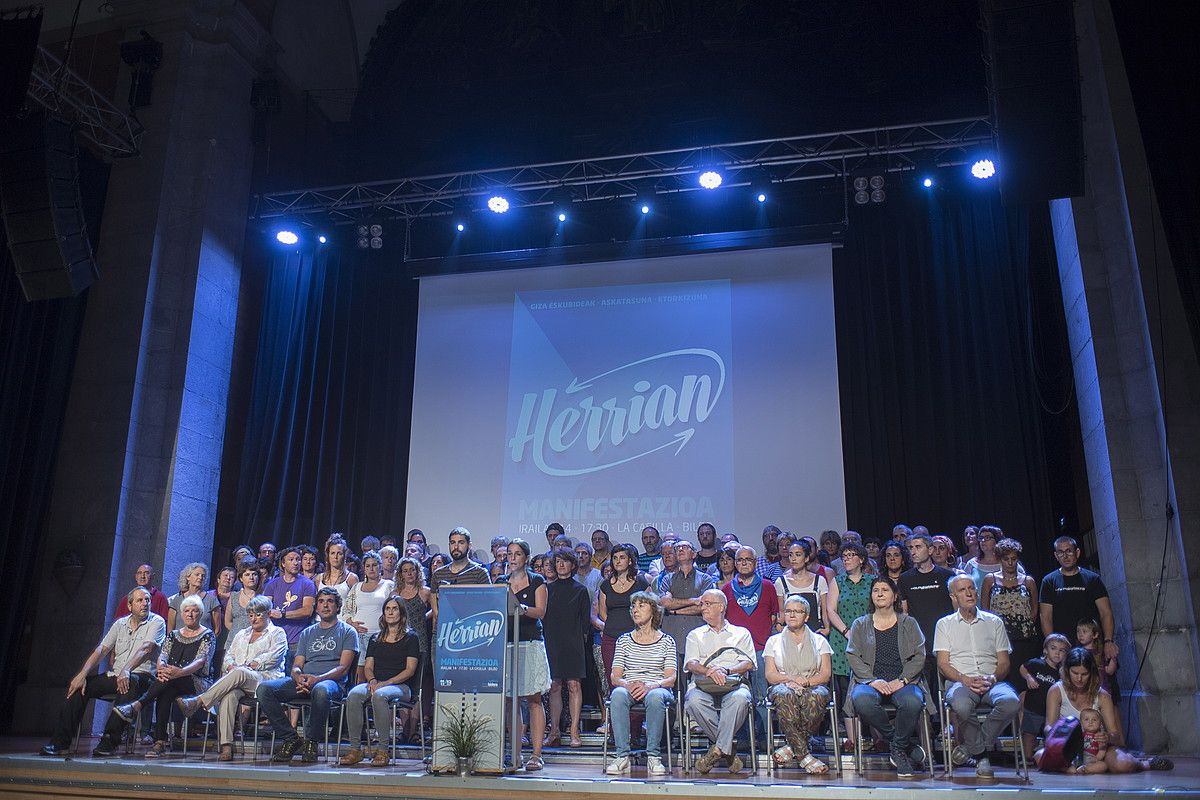 «Presoak eta deserriratuak herrira itzul daitezen gurekin batera lanean aritu direnak, epaituak izan direnak, abokatu lanetan ondoan izan ditugunak, presoen osasuna artatu duten profesionalak, komisarietan torturatuak izan diren pertsonak, espetxean urte luzez egon direnak eta horien senideak, sakabanaketak hil dituen pertsonen hurbilekoak, gerra zikinaren eta estatu bortizkeriaren biktimak. Horiekin guztiekin aritu gara lanean, eta horiekin batera zabaldu nahi dugu gaurkoan gure mezua». Halaxe aurkeztu zuten atzo 11/13 sumarioko auzipetuek Azpeitiko Sanagustin kulturgunean egindako agerraldia. Funtsean, beren jardunean «bidelagun» izan dituztenen babesean agertu ziren jendaurrean; uda guztian jasotako elkartasun keinuak «zinez eskertu» zituzten, eta hilaren 14 manifestaziora eta hilaren 16ko epaiketara begira jarri ziren: «Gu epaitzeaz gain, Euskal Herrian urte luzez garatu eta saretu den jarduera politiko oso bat epaitu eta zigortu nahi dute epaiketa honekin».