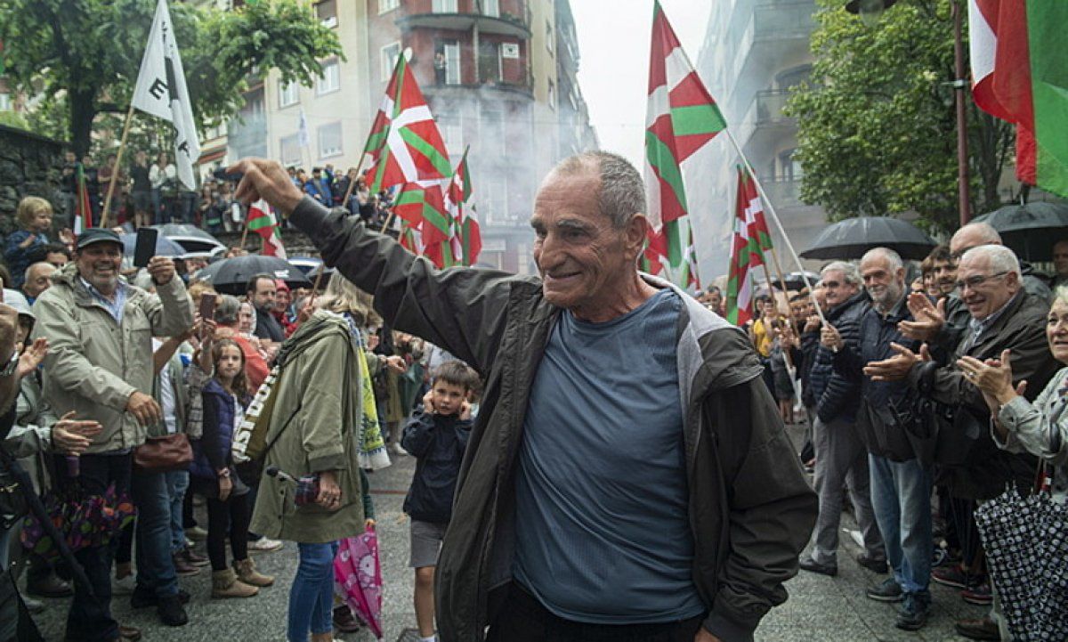 Jose Jabier Zabaleta Baldo preso ohiari Hernanin 2019ko abuztuan egindako harrera. JON URBE / FOKU