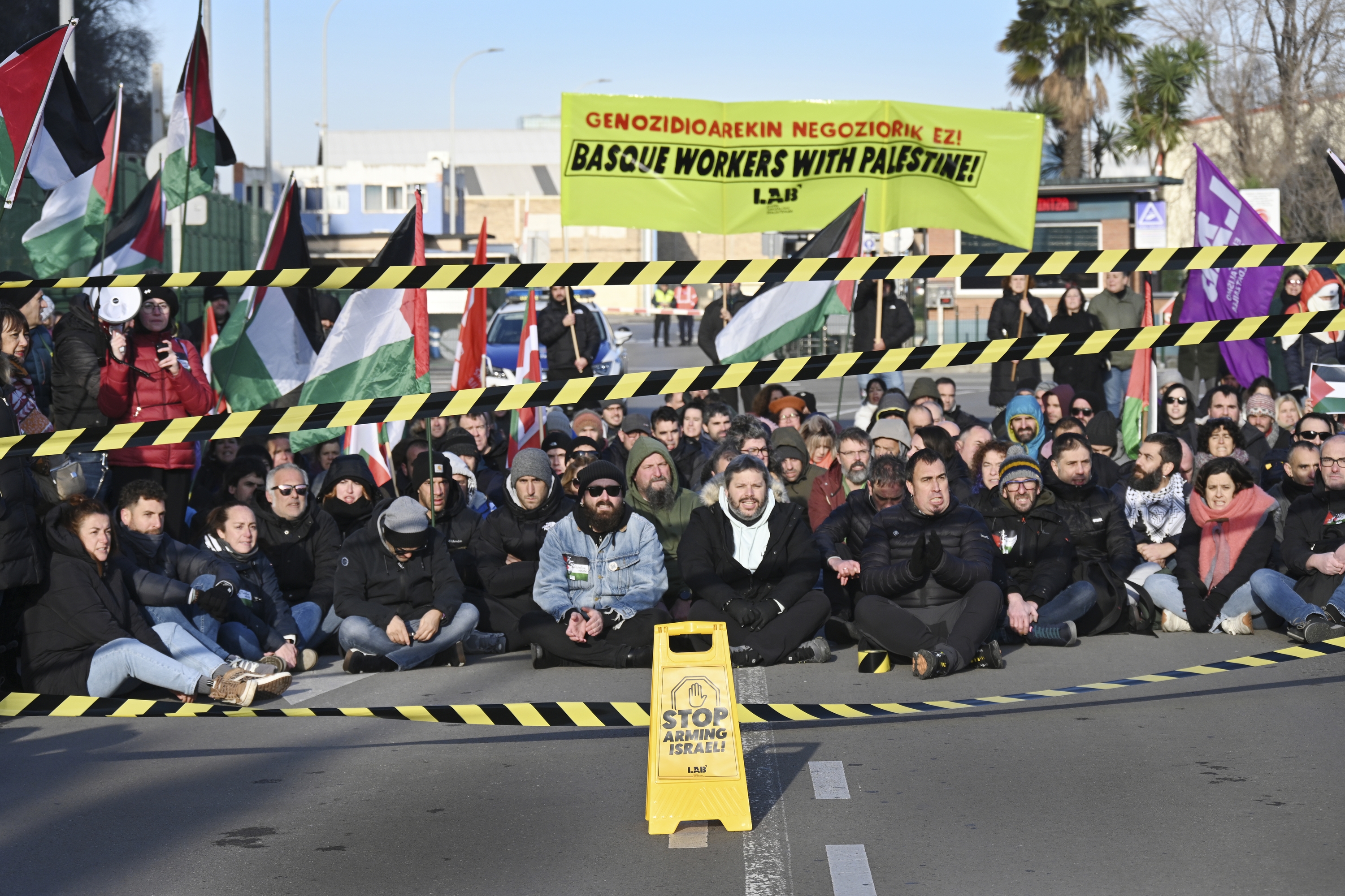 Bilboko portuko sarrera ordu laurdenez itxi dute ehun bat lagunek gaur goizean, LAB sindikatuak deituta. Euskal Herriaren eta Israelen arteko harremanak eteteko presio egin nahi izan dute horrela. Halaber, «genozidioari esker negozioa» egiten dutenak ere salatu nahi izan dituzte protestaldi horren bidez.