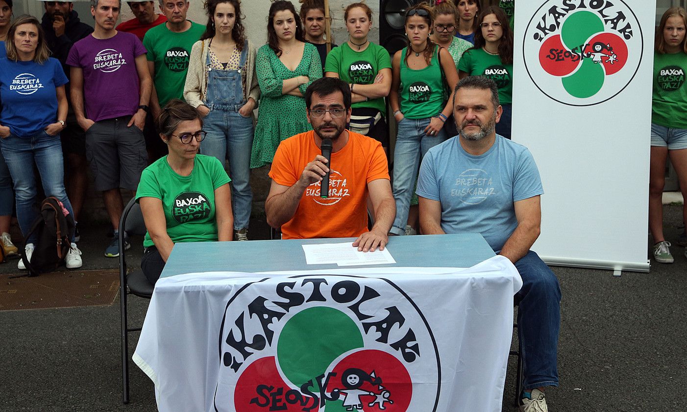 Seaskako ikasle, guraso eta irakasleak, atzo, EEPren egoitza aitzinean. BOB EDME.