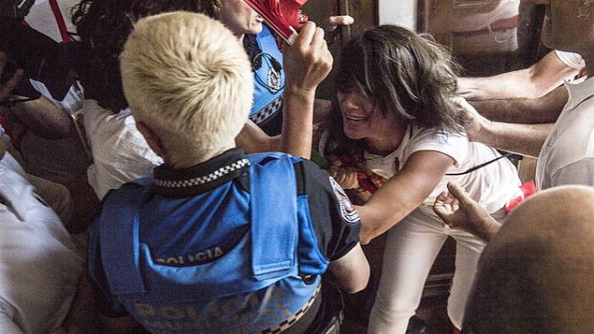 Iruñeko udaltzaingoak txupinazoan Maider Beloki EH Bilduko zinegotziari egin zizkion lesioak epaitegien aurrean salatuko ditu koalizioak. Udaletxeko balkoian ikurrina zabaltzen ahalegindu zen Beloki, Itziar Gomez Geroa Baiko udal ordezkariarekin batera, eta udaltzainek indarrez eragotzi zieten. Ikurrinak kendu zizkieten eskuetatik, tiraka. Ikurrinari tira egiterakoan, Belokiren ileetatik ere tira egin zuen udal poliziak. Beloki ospitalera joan zen, minduta; erradiografiak egin zizkioten, eta medikuen lesio partea jaso zuen: zerbikaletako muskuluen kontraktura larria dauka, eta gaixo agiria eman diote. Amaia Izkok eta Joxe Abaurreak besoetan ubeldurak dituztela ere jakinarazi dute EH Bilduko iturriek.