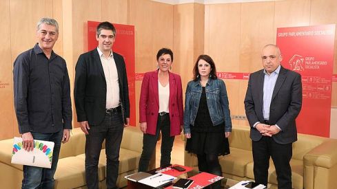 EH BILDU eta PSOEren arteko bilera. Oskar Matute, Gorka Elejabarrieta, Mertxe Aizpurua, Adriana Lastra eta Rafael Simancas. EFE