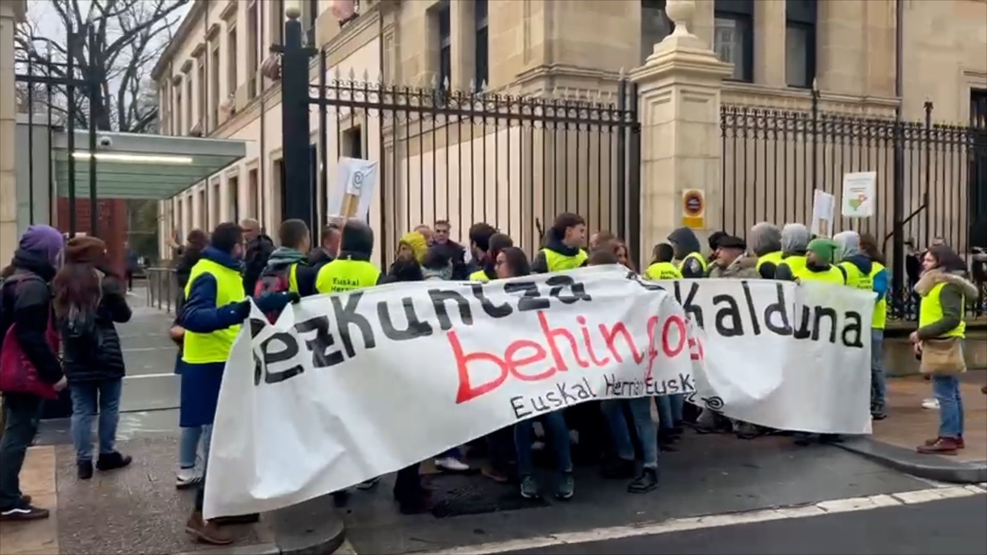 EAEko Hezkuntza Legea onartuko dute gaur Eusko Legebiltzarrean, eta EHE Euskal Herrian Euskaraz-ek protestara deitu du gaur goizerako; ganberako atarian elkartu dira lehen orduan, legeari «planto» egiteko. Dozenaka lagun batu dira Hezkuntza euskalduna behingoz! zioen pankartaren atzean, legearen inguruko desadostasuna agertzeko. «EHEtik argi eta garbi adierazi nahi dugu: ez dugu Hezkuntza Lege hau onartzen», adierazi dute. Izan ere, Euskal Herrian Euskaraz-en ustez, euskararen berreskuratze prozesua «inflexio puntuan» den honetan, lege berriak arazoak «indartu» eta «itoginak» larriagotu egiten ditu. Hala, mezu argia helarazi nahi izan diete legea babestuko duten alderdiei: «Hezkuntza Lege honek ez digu balio; aurrekoa bezalaxe, iraungita dago».