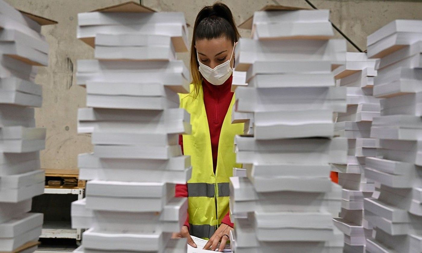 Behargin bat, atzo, hauteskundeetan erabiliko duten materiala gainbegiratzen. FERNANDO VILLAR / EFE.