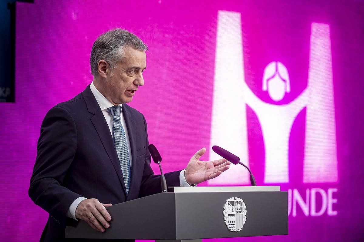 Iñigo Urkullu Emakunderen ekitaldi batean, iazko apirilean. JAIZKI FONTANEDA / FOKU