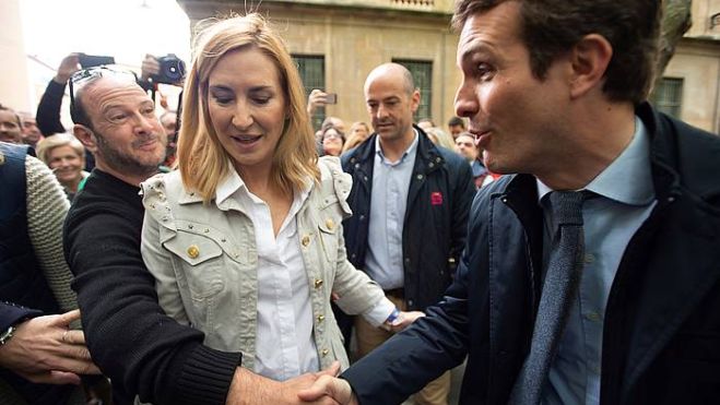 Ana Beltran, apirileko kanpainan Iruñean, Pablo Casado Espainiako PPko burarekin. IñAKI PORTO, EFE