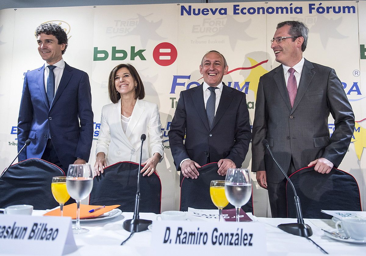 Arabako, Bizkaiko eta Gipuzkoako aldundiak gidatzeko EAJk aurkezturiko hiru hautagaiek agerraldia egin dute Bilbon, Nueva Economiak antolatutako hitzaldi zikloan, Izaskun Bilbao Barandika Europako Parlamenturako hautagai jeltzaleak aurkeztuta. «Erakundeen arteko lankidetza» goretsi dute hirurek, agintean egon diren bitartean euren herrialdeek «aurrera» egin dutela nabarmendu dute, eta «hobetze» bide horretan jarraitzeko EAJren aldeko botoa eskatu dute Ramiro Gonzalezek, Markel Olanok eta Unai Rementeriak.