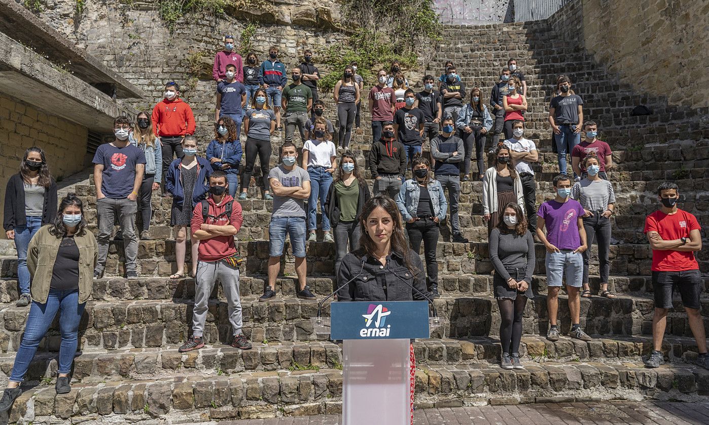 Ernai gazte antolakundeak Donostian egindako agerraldia, atzo. ANDONI CANELLADA /FOKU.