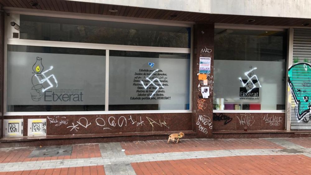 Atzo goizaldean svastikak margotu zituzten Etxerat elkarteak Gasteizen duen egoitzaren kanpoaldean, eta sakabanaketaren aurkako taldeak salaketa publikoa egin du.