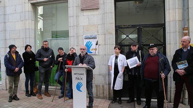 Rene Cassin legelariaren etxe aitzinean egin dute prentsa agerraldia, Baionan, eta Anaiz Funosas eta Mixel Berhokoirigoinek urtarrileko manifestazioan parte hartuko duten herritar batzuk aurkeztu dituzte: laborari bat, ikuskatzaile bat, alokatzaileen batzordeko kide bat, irakasle bat, mediku bat... Lehen aldiz izanen dira Bakegileen martxa batean, eta arrazoiak azaldu dituzte. Euskal presoei «salbuespeneko» legedia ez aplikatzeko galdegin dute, eta arrunta ezartzeko, ondorioz.
