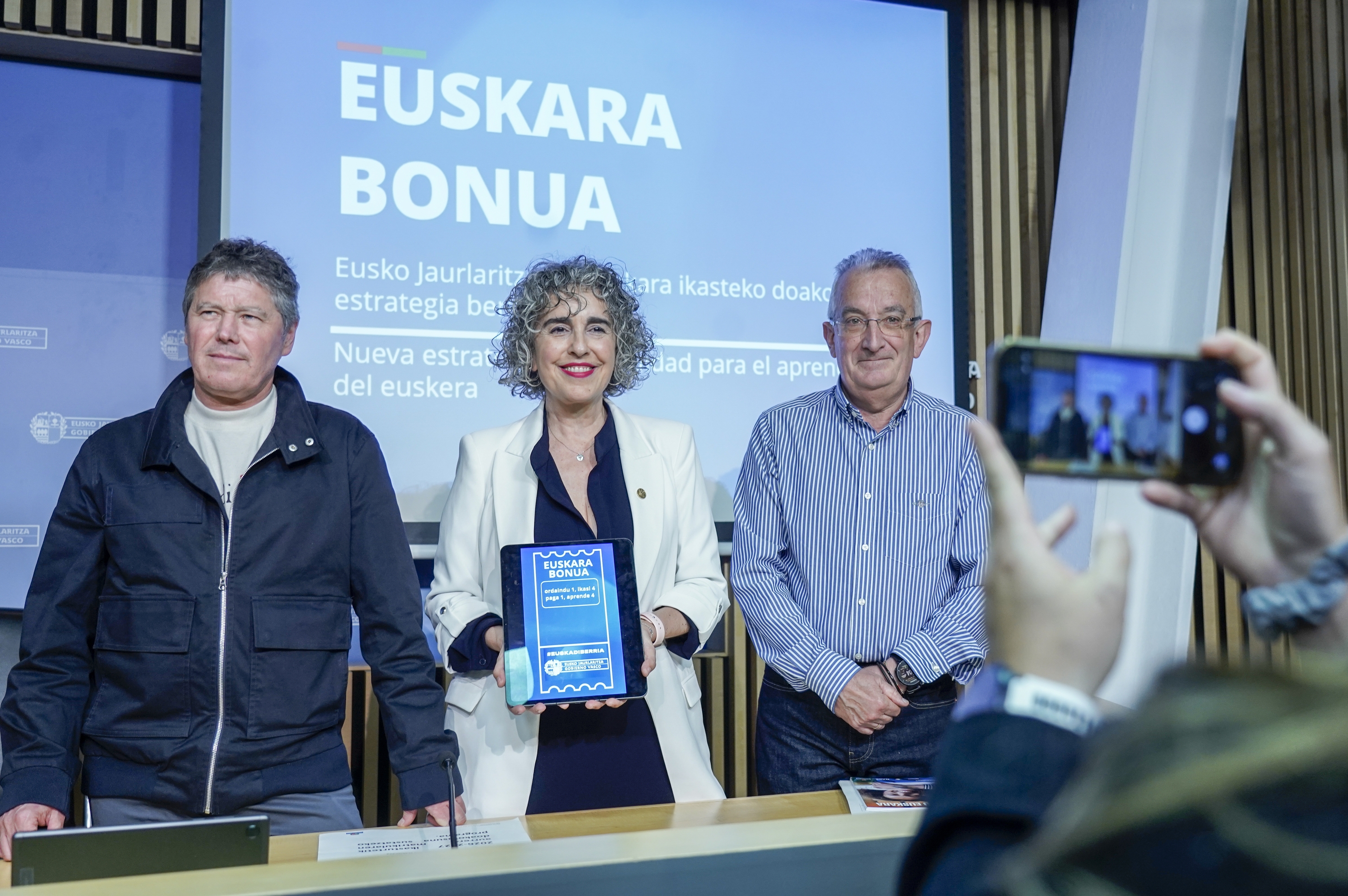 Euskara ikasteko doakotasuna bultzatze aldera, estrategia berria aurkeztu du gaur Eusko Jaurlaritzako Kultura eta Hizkuntza Politikarako Sailak. Euskara Bonua jarriko du martxan datorren ikasturtean: 120 euroko ordainketa bakarra eginda, lau urtez euskara ikasteko aukera izango dute ikasleek, norbere erritmoan, B1 maila eskuratu arte. Ibone Bengoetxea sailburuak azaldu duenez, helburua da euskara ikasten hasten direnek asmo horri eustea, horretarako erraztasunak eta malgutasuna emanda.