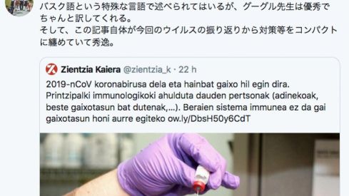«Euskara izeneko hizkuntza berezi batean deskribatu arren, Google doktorea bikaina da, eta behar bezala itzultzen du», idatzi du japoniarrak. «Artikulu hau berez bikaina da, birus horren atzera begirako moduak modu trinkoan laburbiltzen dituelako».