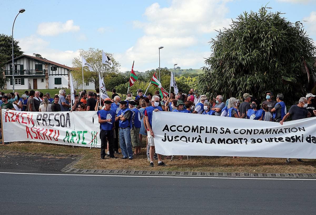 Gaur goizean elkarretaratzea egin dute, Senperen (Lapurdi), Frederic Haranburu Xistor-en askatasuna eskatzeko. Euskal preso hori baldintzapean aske uzteko eskaeraren alde egin zuen atzo Zigorrak Ezartzeko Auzitegiak, baina berehala dei egin zuen terrorismoaren aurkako fiskaltzak, eta Lannemezango (Okzitania) presondegian segitu beharko du oraingoz. Berantenez irailaren 24a aitzin aztertu beharko du Dei Auzitegiak Haranbururen kasua. Gaur, dozenaka herritar batu dira Senperen 30 urte aski da! lelopean; errepideak oztopatu dituzte lastozko fardoekin, eta eskuorriak banatu dizkiete ibilgailuetako gidariei, euskal presoaren askapena eskatzeko.