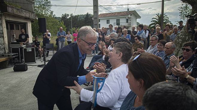Kotte Ezenarro Hendaiako alkatea, Perurenaren senideak agurtzen. JON URE / FOKU