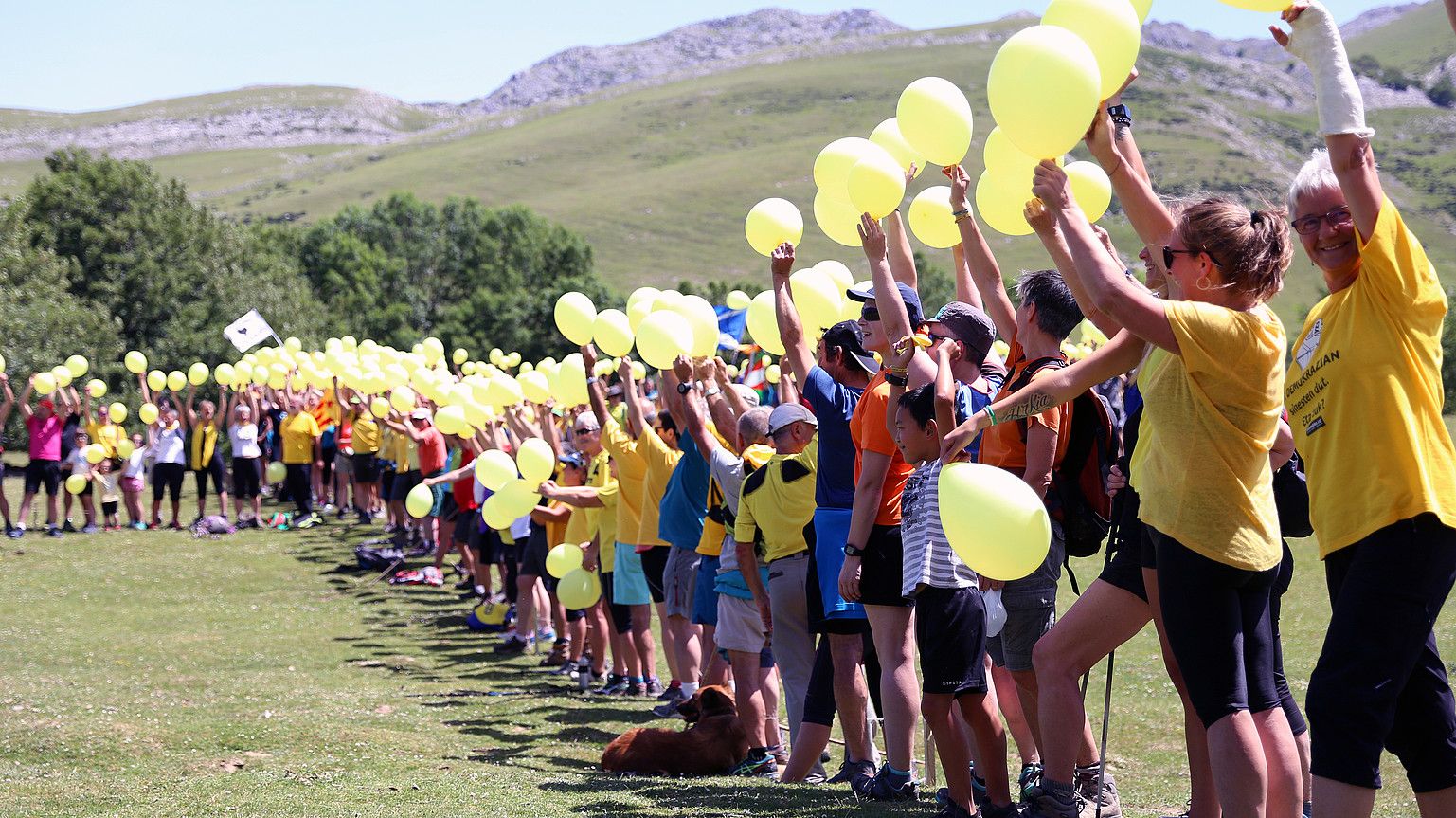 «Kataluniako preso politikoekin elkartasunez eta oinarrizko eskubideen defentsan», Arantzazutik Urbiarakobidea (Gipuzkoa) egin zuten atzo 200 lagun inguruk, Gure Eskuk deituta. Lazo hori itxurako mosaikoa osatu zuten Urbiako zelaigunean —argazkian—, eta «eskubideen defentsa ezinbestekoa» aldarrikatu.