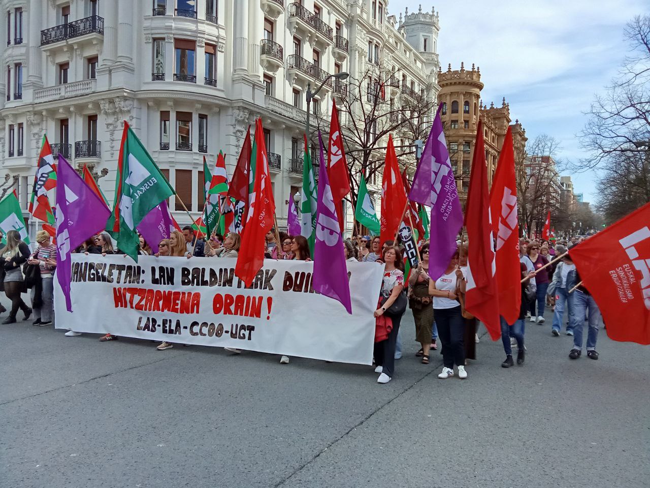 Otsailaren 24rako, 25erako eta 26rako greba egunak deituta daude Araba, Bizkai eta Gipuzkoako eskola publikoetako jangeletan; abian da, beraz, greba, eta lehen egunean jaso duen erantzuna «handia» izan dela nabarmendu dute sindikatuek: «Masiboa». LABek, ELAk, CCOOk eta UGTk, laurek diete eginda langileei grebarako deia. Mobilizazioaren atzeko «batasuna, antolaketa eta indar kolektiboa» goraipatu dituzte. Bihar mobilizazioekin jarraituko dute, protestak egingo baitituzte Eusko Jaurlaritzak hiru herrialdeetako hiriburuetan dituen lurralde ordezkaritzetan.