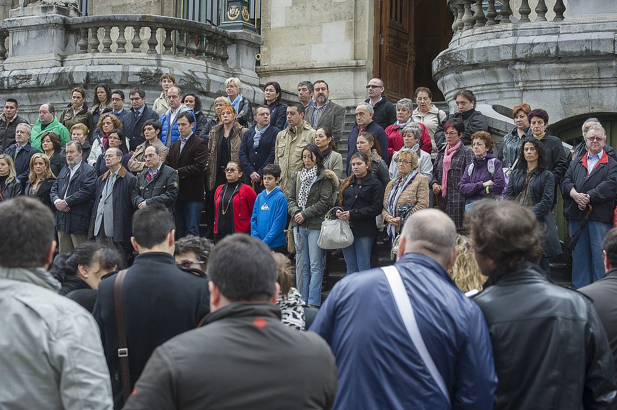 Azken astean Bilbon izan diren hilketak salatzeko, protesta egin zuten atzo eguerdian hiriko udaletxearen atarian. Bigarren aldiz bildu dira toki berean lau egunean. «Harrituta eta abailduta» dago hiria, Ibon Areso jarduneko alkatearen esanetan. Nabarmendu du «ohikoa» ez dela gisa horretako indarkeria kasuak izatea hirian. Horren aurrean, «eraginkor» jarduteko eskatu die Poliziari eta auzitegiei. «Indarkeria ekintza eta hilketa horiek behar den gisan zigortu ditzatela». Adierazpen bateraturik ez du egin udalak.