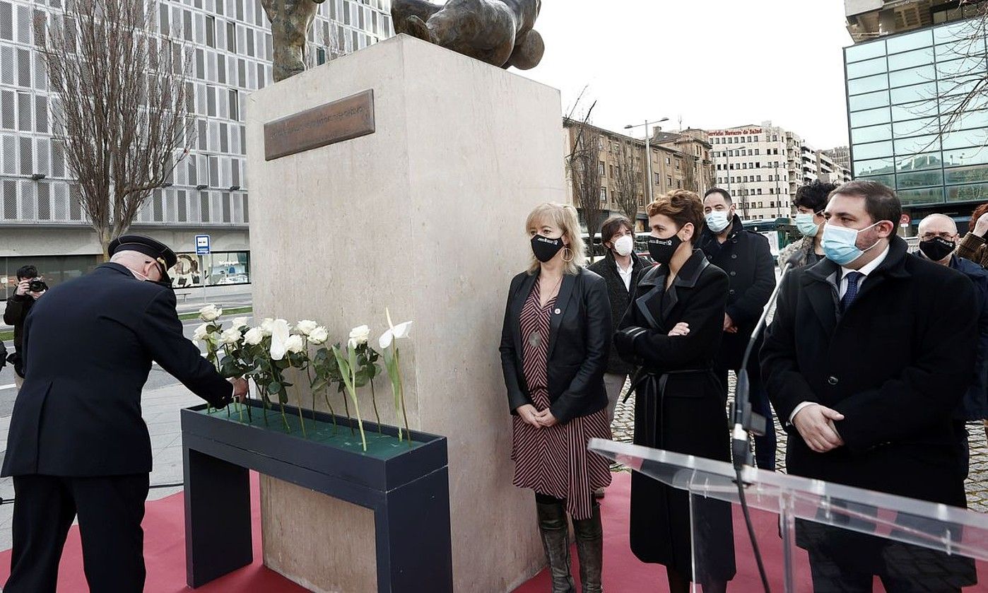 Nafarroako Gobernuko ordezkariak, Parlamentukoak eta Segurtasun Indarrenak elkartu ziren atzo Iruñean, Terrorismoaren Kontrako Europako Eguna zela eta, biktimak gogoan izateko. Besteak beste, «indarkeria terroristaren» izaera «bidegabea eta legez kontrakoa»nabarmendu zuten: «Giza eskubideen erabateko urraketa da, eta demokrazia eta bizikidetzarako mehatxu handi bat da».