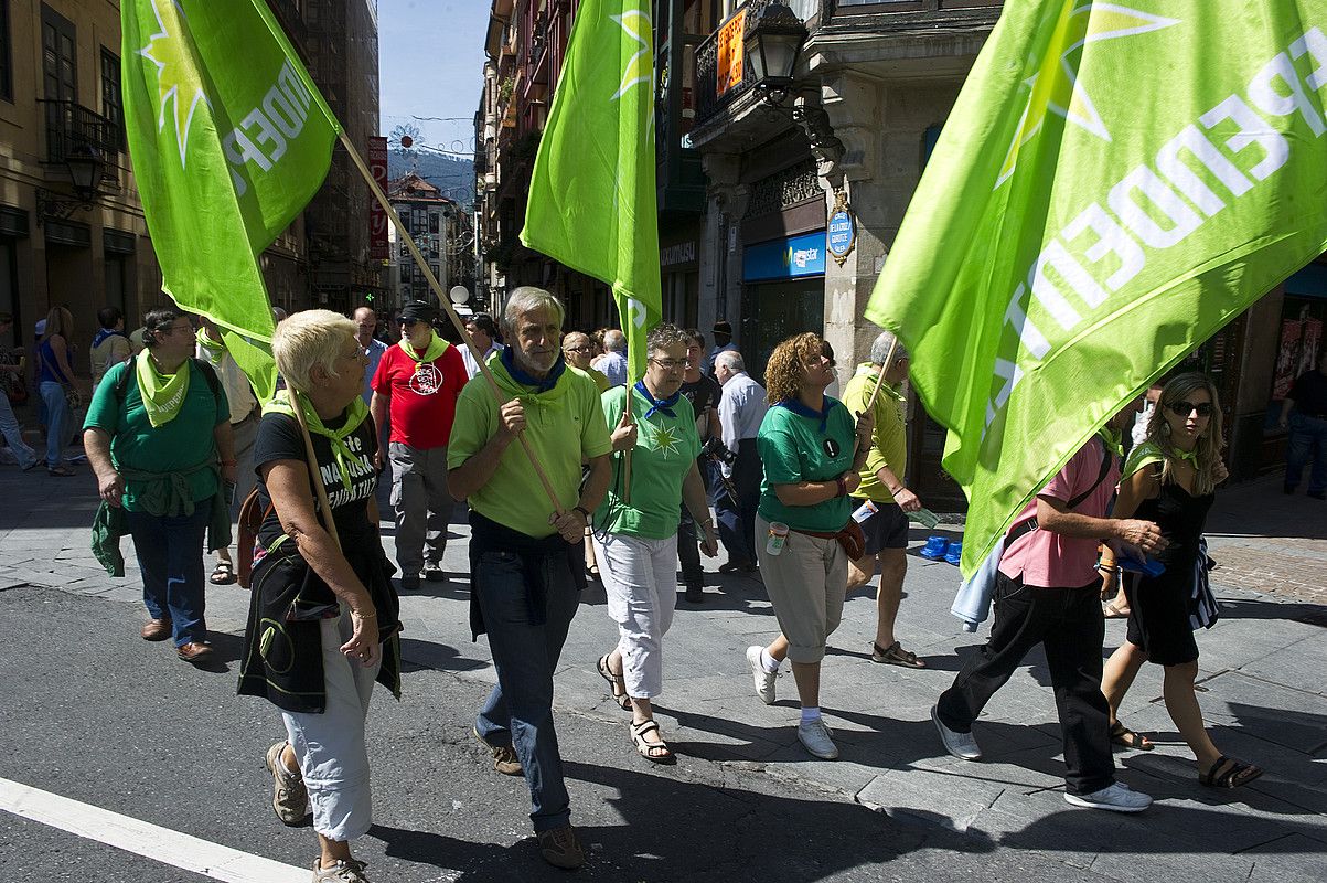 Bilboko Aste Nagusian ere jaia eta independentziaren aldeko aldarrikapena uztartu ditu Independentistak sareak. Ehunka lagunek parte hartu zuten atzo kalejira berdean. Bilboko Zazpikaleetatik abiatuta, hainbat kale eta gune alaitu zuten kantuz eta musikaz, independentziaren aldeko aldarrikapena egitearekin batera. Udan, Euskal Herriko hainbat herritako festetan kalejira berdeak antolatu ditu Independentistak sareak, eta atzo Bilboko Aste Nagusian egin zuen. Kalejira eguerdian abiatu zen Zamudioko Atetik, eta Bilboko kaleak zeharkatu zituen, tarteka gelditzen zela, kantuan aritzeko eta jende berria biltzeko.