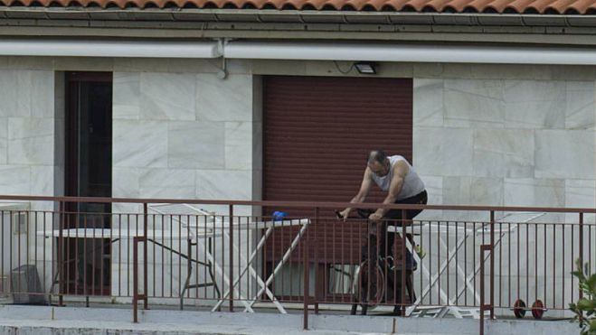 Gizon bat kirola egiten balkoian, Donostian. JON URBE / FOKU