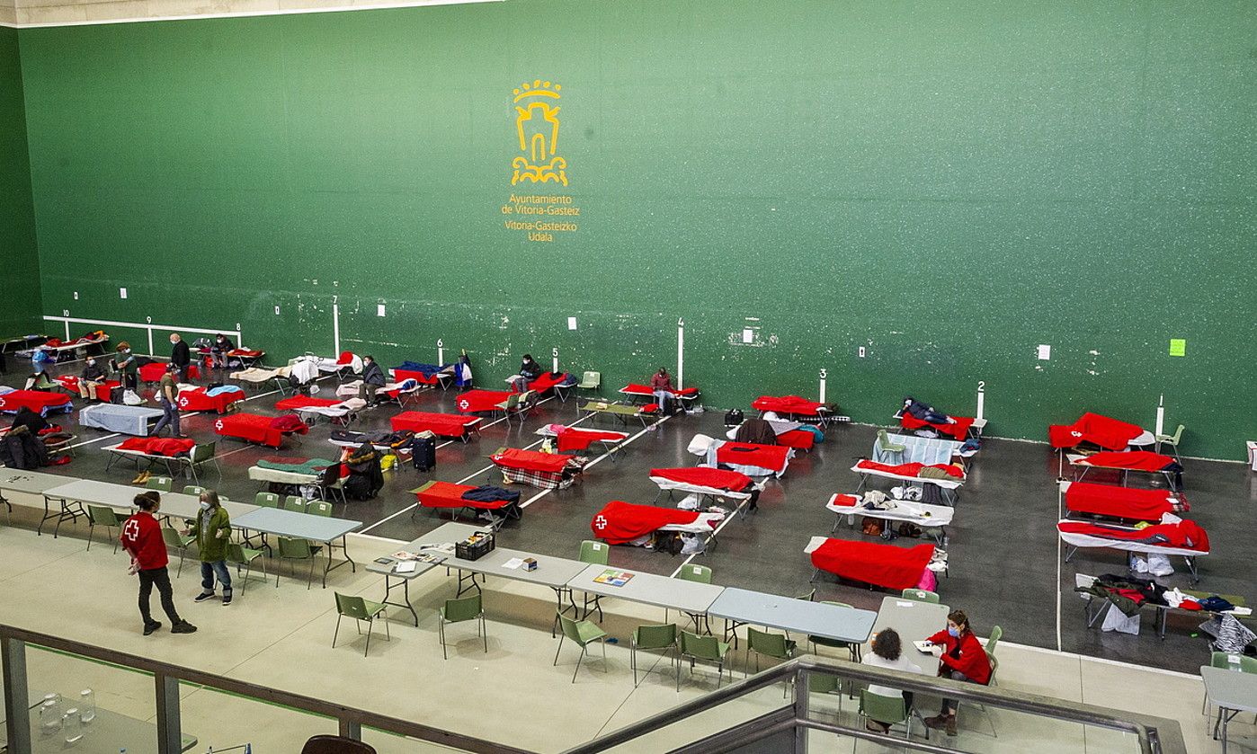 Gasteizen, Lakuako pilotalekua prestatu dute etxegabeentzako aterpetxe gisara. JAIZKI FONTANEDA / FOKU.