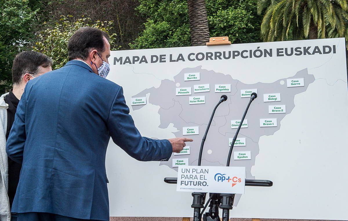 Eusko Legebiltzarrerako hauteskundeetarako kanpainaurre betean sartuak daude indar politikoak, eta, testuinguru horretan, Arabako, Bizkaiko eta Gipuzkoako «ustelkeriaren mapa» aurkeztu du Carlos Iturgaiz PP+C's koalizioko lehendakarigaiak.