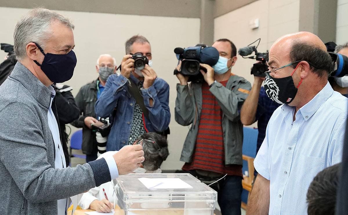 Iñigo Urkullu EAJren lehendakarigaia izan da goiztiarrenetako bat. Durangon (Bizkaia) bozkatu du. «Neurriek segurtasuna bermatzen dute», adierazi du. «Trena lau urtetik behin» pasatzen dela ohartarazi du, eta dei egin die herritarrei horretaz baliatzeko.