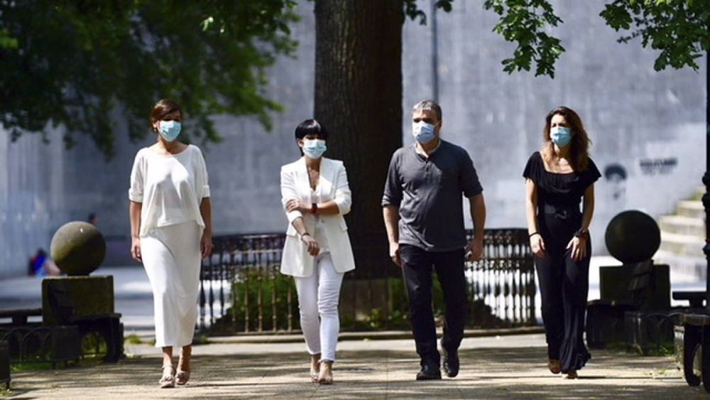 Mikel Otero Arabako zerrendaburuarekin eta Jasone Agirre Bizkaikoarekin batera egin du ekitaldia Iriartek. Koronabirusaren osasun krisia ezin dela ahaztu esan du, eta etorkizunari begirako perspektiba emango duela gertatutakoak. Hala, adierazi du atzean inor utziko ez duten gobernatzeko modu berriak behar direla.